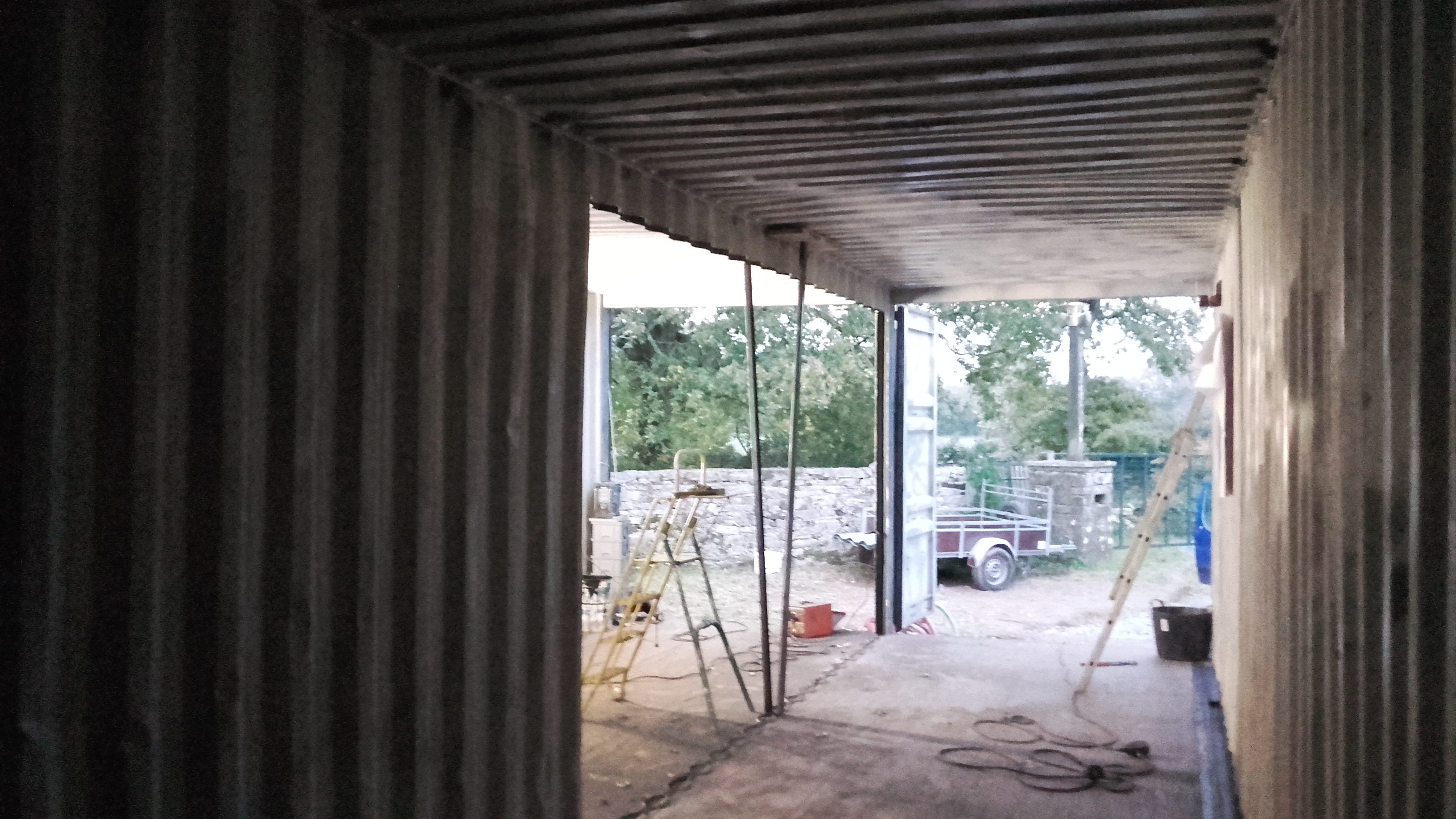 Il existe plusieurs raisons pour avoir mener ce projet de maison container, mais les 2 principales sont l’aspect économique et la satisfaction de cette réalisation. D’un point de vue économique : nous avons tout réaliser nous-même et aucune entreprise extérieure n’est intervenue pour les travaux de façonnage, donc nous économisons les charges sociales, les marges des entrepreneurs, ce qui représente en moyenne 60% du coût des travaux. La deuxième raison est un enrichissement personnel. N’ayant pas le savoir même dans son détail pour une construction de ce type, il faut chercher, se renseigner sur les techniques appropriées, chercher le meilleur rapport qualité/ prix des matériaux, anticiper toutes les étapes de construction, c’est un long travail d’organisation. Enfin le fait de réaliser son propre nid familial qui plus est pour des années fait chaud au cœur!!